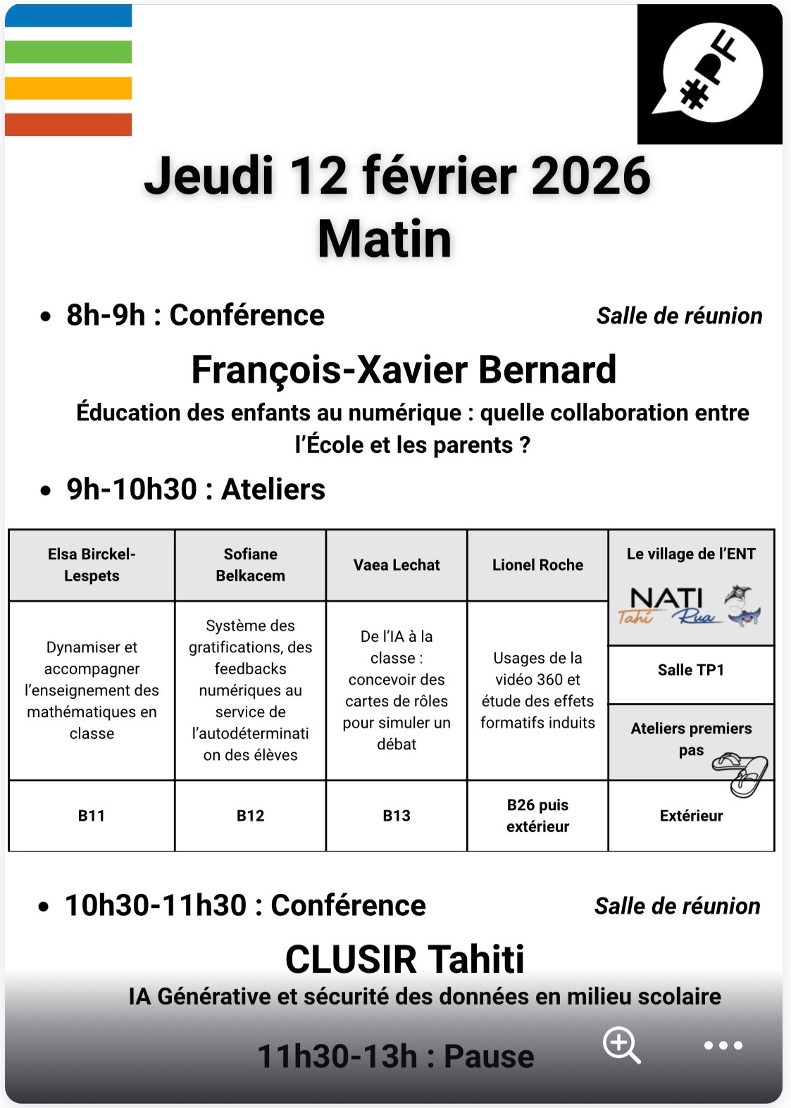 Un « village de l’ENT » permettra aux participants de se familiariser avec l’ENT polynésien Nati et d’en découvrir des usages concrets.